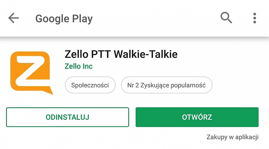 Wejdź do sklepu Google Play, znajdź i zainstaluj bezpłatną aplikację Zello PTT Walkie-Talkie