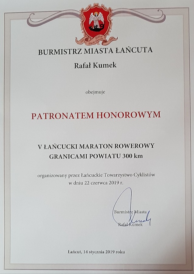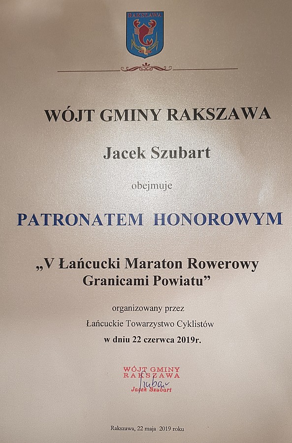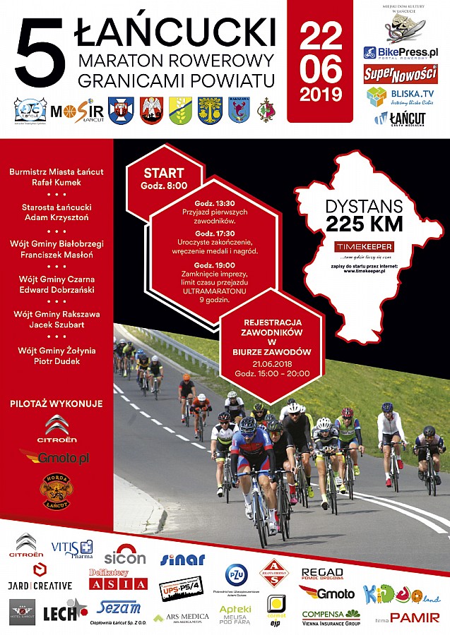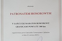 Łańcuckie Towarzystwo Cyklistów organizuje w dniu 22 czerwca 2019 r V edycję Maratonu Rowerowego 225 km pn Granicami Powiatu na trasie Łańcut – Białobrzegi – Żołynia – Rakszawa - Czarna- Łańcut. Maraton przebiegał będzie granicami północnej części Powiatu Łańcuckiego. Północna część powiatu posiada bardzo dobre walory rekreacyjno-turystyczne, ponieważ leży na krańcach byłej Puszczy Sandomierskiej.W tej części powiatu trasa prowadzi po Szlaku Green Velo , majątkach Ordynacji Potockich gdzie znajduje się wiele zabytków i ciekawych miejsc jak kamień chłosty przy spichlerzu, garncarstwo ,wikliniarstwo, dymarki a także zabytkowe przydrożne kapliczki .