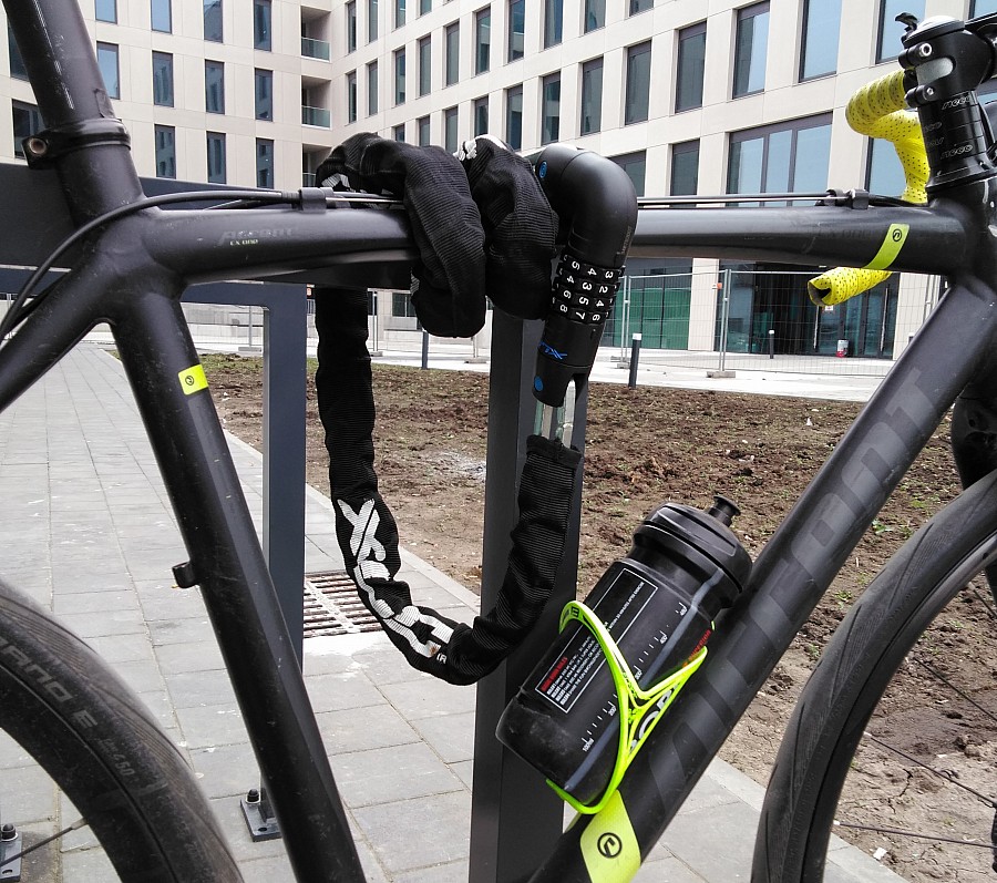 Internetowy sklep rowerowy rowertour.com umożliwił mi przetestowania zapięcia łańcuchowego na szyfr XLC YAKUZA PLUS LO-C19. Przez kilka tygodni mogłem go używać przemieszczając się rowerem głównie w dużym mieście, dojeżdżając do pracy do centrum czy też robiąc po drodze zakupy w dyskoncie spożywczym. Na ogół jeżdżę z dużym plecakiem, więc przewożenie ciężkiego zapięcia nie stanowiło dla mnie większego problemu. Ale jego rozmiary i waga były mimo wszystko odczuwalne. Szyfr stanowił dla mnie duże udogodnienie zwłaszcza zimą, kiedy to nie musiałem szukać kluczy, tylko w grubej rękawicy byłem w stanie zamknąć i otworzyć zapięcie. Jako wadę mogę uznać jego elastyczną konstrukcję, która utrudniała mi manipulowanie samym zapięciem (wyciąganie z plecaka czy obejmowanie elementu mocowania). Kiedy już przypinałemłem rower na parkingu przed wejściem do marketu lub innym miejscem publicznym czułem się stosunkowo bezpiecznie.