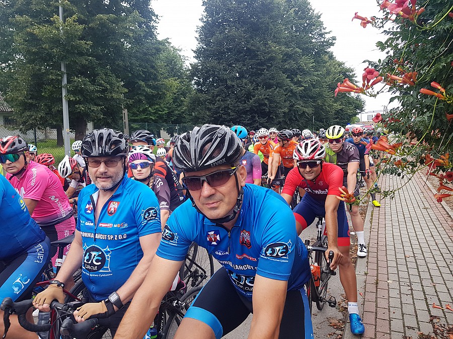 Ósma edycja Łańcuckiego Klasyka im. gen. J Gdańskiego zakończona. Łańcucki Klasyk rozegrany na szosach Miasta Łańcuta, Gminy Łańcut, Gminy Markowa i Miasta i Gminy Kańczuga w wymarzonych warunkach pogodowych choć alerty ostrzegawcze były. Wczorajsza burza nie narobiła bałaganu organizatorom na drogach. Na starcie do rywalizacji stanęło 150 kolarzy z województw małopolskiego, lubelskiego, śląskiego i podkarpackiego. Punktualnie o 11.oo kolarze uczcili minutę ciszy 77 Rocznicę Powstania Warszawskiego. Następnie starterzy honorowi Starosta Łańcucki Adam Krzysztoń, gen. Józef Gdański i dyrektor MOSiR w Łańcucie Jerzy Hałka dali sygnał do startu. Peleton ruszył z parkingu MOSiR na start ostry na ul. Potockich w Łańcucie. Po starcie peleton zwarty pędził do pierwszej premii górskiej w Cierpiszu. Od samego początku duże tempo narzucili Tomasz Rudnicki,Piotr Szczepanik,Andrzej Ulman, Marcin Kosterkiewicz oraz Mateusz i Patryk Burdowie. W początkowej fazie wyścigu peleton jechał zwarty naprawdę w niesamowitym tempie. Nikt nie puszczał koła. W czasie podjazdu do Cierpisza Górnego zaczęło się coś dziać. Do czołówki dołączył Maciej Szczepanik, który dokręcał a pozostali nie chcieli odpuścić. Kiedy zostało 500 m do pierwszej premii, błyskawicznie w niesamowitym tempie ruszył Patryk Burda, któremu nie pozwolili daleko odjechać ale peleton został rozerwany na strzępy. W pogoń ruszył Szczepanik i Mateusz Burda , którzy przed kreską wyprzedzili Patryka Burdę. Od tej premii zawiązała się 3 osobowa ucieczka, która natychmiast uzyskała 200 m przewagę i powiększała coraz bardziej. Premię Górską w Cierpiszu wygrali Mateusz Burda oraz Agata Wawrzaszek, która nie dała swoim rywalkom żadnych szans. Kolejny podjazd i kolejna Premia Górska w Lipniku. Dzięki dobrej współpracy trójka uciekinierów powiększyła zyski do 1 km przewagi nad rozbitym peletonem, gdzie dominowali Cezary Wójcik, Andrzej Ulman i Bartłomiej Oświt a wśród pań Agata Wawrzaszek .