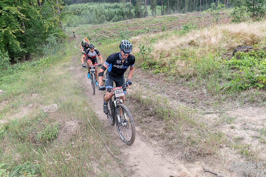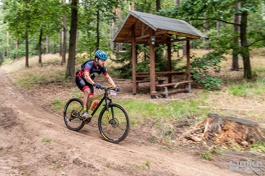 Puchar Polski XCM był kolejnym powodem, dla którego do Obiszowa zjechało sporo mocnych zawodników. Interwałowa trasa potrafi solidnie zmęczyć, a wygrywają tutaj po prostu najlepsi. Na dystansie GIGA trzeba było pokonać ponad 90 km i od pierwszych kilometrów było jasne, że walka o podium i zwycięstwo rozegra się między zawodnikami SGR Specialized i JGB2 Cryospace. Karol Rożek, Piotr Konwa, Wojciech Halejak i Adrian Brzózka praktycznie przez cały dystans jechali razem, dzieląc się prowadzeniem i dzięki współpracy oddalając się rywalom coraz bardziej. Było też jasne, że ktoś w końcu zaatakuje, a tym kimś okazał się Adrian Brzózka, który finiszował jako pierwszy, zgarniając splendor należny zwycięzcy. Po dwóch minutach na mecie pojawił się Piotr Konwa, a za nim Wojciech Halejak.