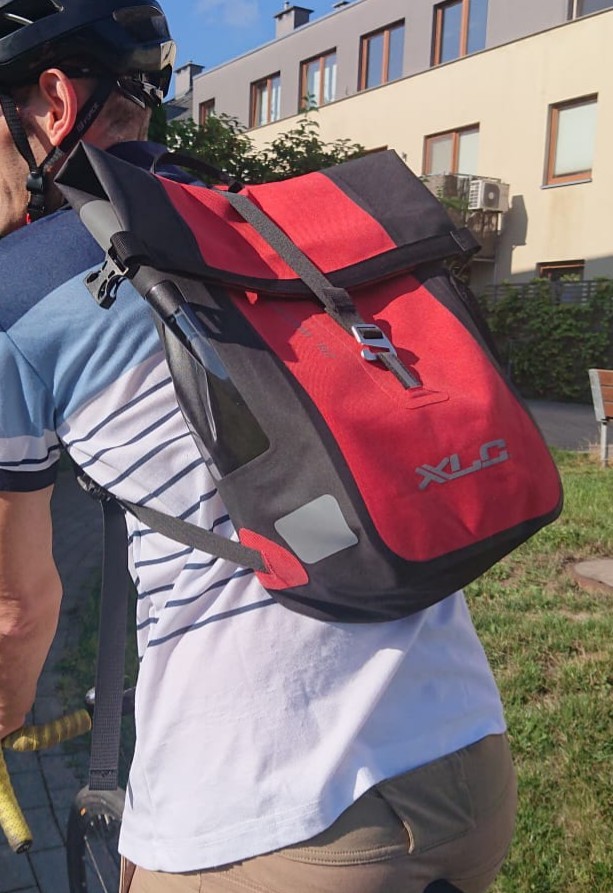 Producent gwarantuje wodoodporność tego plecaka. Miałem takie szczęście, że nie udało mi sie trafić na rzęsistą ulewę. Przy lekkim deszczu rzeczywiście wilgoć nie dostaje się do środka. Myślę jednak, że firmie XLC można zaufać. No i pamiętajmy, że w warunkach miejskich łatwo można znaleźć miejsce, gdzie można się schronić przed deszczem, więc zawartość plecaka powinna być bezpieczna.