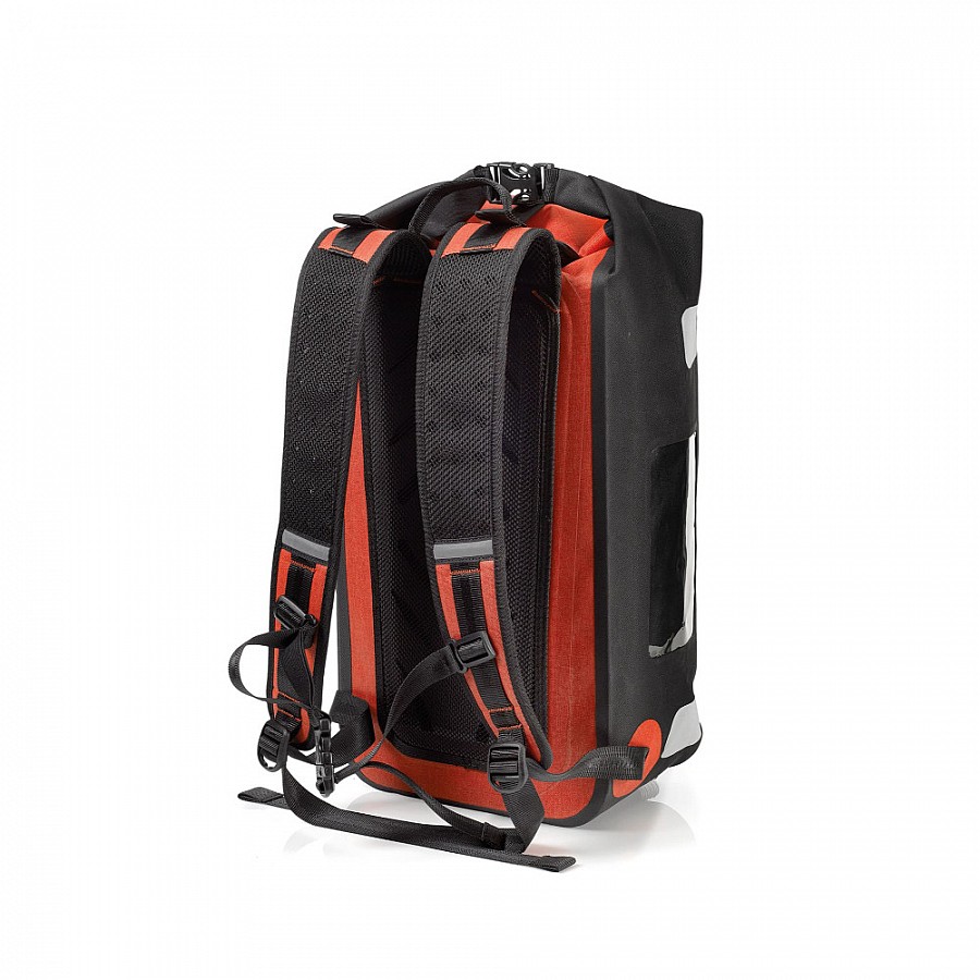 Wodoodporny plecak XLC BA-W35 wyposażony jest w boczną kieszeń na bidon, wyjmowany układ komór wewnętrznych np. na laptopa. Posiada ergonomicznie wyprofilowaną wyściółkę z wentylacją na plecach, a także liczne odblaski dla większego bezpieczeństwa. Objętość plecaka można zwiększyć poprzez postawienie pionowo jego otwarcia. W wenętrznej kieszeni z przezroczytym okienkiem można trzymać np. telefon.