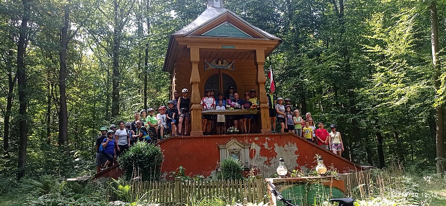 Miłości dwóch kółek wraz z rodzinami stawili się przed Ośrodkiem Kultury w Głuchowie na wspólny wyjazd rowerami po szlaku Green Velo przebiegającym w północnej części powiatu Łańcuckiego. Aura na wypady rowerowe nadwyraz przyjazna .Organizatorzy rajdu Centrum Kultury Gminy Łańcut Ośrodek Kultury w Głuchowie i Łańcuckie Towarzystwo Cyklistów w Łańcucie przygotowali fajną trasę . Trasa prowadziła po drogach szutrowych, leśnych i krótkie odcinki asfaltowe . Każdy mógł ten dystans 55 km pokonać, choć leśne odcinki dróg o podłożu piaszczystym dały niezły wycisk rowerzystom. Od razu na twarzach pojawiły się rumieńce i kropelki potu. Odwiedzieliśmy wiele pięknych ale zapomnianych kapliczek i krzyży rozsianych po masywach leśnych w byłej Puszczy Sandomierskiej i posiadłościach Ordynacji Potockich z Łańcuta . Podczas rajdu dowiedzieliśmy się też o miejscach tragicznych z różnych okresów m.in. o Diable Łańcuckim Stanisławie Stadnickim, który za swoje niecne czyny zginął a sprawca jego zguby obnosił jego odciętą głowę po Lublinie, miejsce ranienia Dżulii Zamojskiej przez odyńca podczas polowania czy miejsca straceń Władysława Dziergi i Stanisława Dudka żołnierzy AK w okresie II wojny światowej a także wspaniałe kaplice św.Huberta w Białobrzegach i św.Antoniego w Żołyni . Organizatorzy zadbali tez na upalną sobotę wspaniale serowniki i wodę , by rowerzyści mogli uzupełnić utracone kalorie i elektrolity. Na zakończenie rajdu czekała pod grzybkiem gorąca herbata i kiełbaski prosto z rożna . Wszyscy dotarli do mety rajdu cali choć nieźle utrudzenie . Rowerzyści stwierdzili, że pomimo upału, zmęczenia wyjazd w tak urokliwe tereny był wspaniały bo przebiegał z dala od szos i aut. Udowodniliśmy swoim uczestnictwem ,że warto być z nami i zapoznać się nieco z historią naszego regionu .