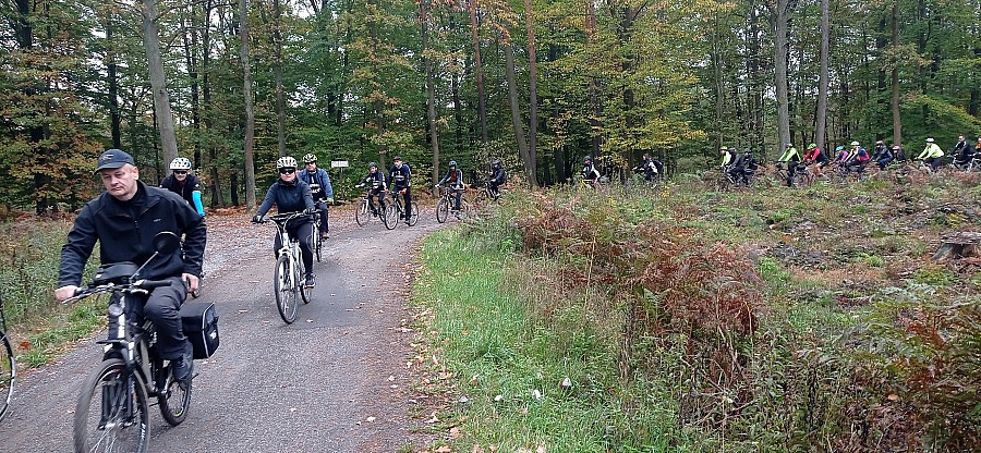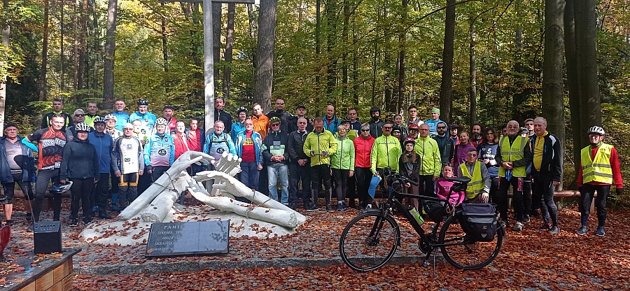 W dniu 15 października 2022 r zakończyliśmy sezon rowerowy 40 Rajdem Powiatowym zorganizowanym przez Starostwo Powiatowe w Łańcucie wspólnie z Łańcuckim Towarzystwem Cyklistów pod patronatem honorowym Starosty Łańcuckiego Adama Krzysztonia. Rajd poświęcony był 80 rocznicy powstania Armii Krajowej i 83 rocznicy napaści Związku Sowieckiego na Polskę. Organizatorzy przygotowali trasę by pokazać miejsca kaźni ofiar z okresu II Wojny Światowej na trasie Czarna – Turza k/Sokołowa Młp. W czasie jazdy jesienna aura rozpieszczała rowerzystów kolorytem drzew, pięknym słońcem, super atmosferą i pięknymi duktami naszych lasów. Po trasie odwiedziliśmy miejsce rozstrzelania rodziny narodowości żydowskiej w lesie w Czarnej. Kolejnym miejscem były obeliska poświęcone ofiarom tragicznych zdarzeń poświęconym mieszkańcom Medyni Gł. i Pogwizdowa. W lesie turzańskim, odwiedziliśmy miejsce kaźni zwane Małym Katyniem, gdzie zostało zamordowanych przez NKWD ok 400 osób a w szczególności żołnierzy AK z obwodu Ropczyckiego i jeńców z obozu w Trzebusce. Po przybyciu do miejsc kaźni uczestnicy rajdy zapalili znicze oddając w ten sposób cześć ofiarom wojny za przelaną niewinnie krew za wolność ojczyzny. Po kilku godzinach rajd dotarł bezpiecznie do Zagrody Garncarskiej w Medyni Głogowskiej, gdzie czekał gorący posiłek przygotowany przez Irenę i Ryszarda Kucha. Na zakończenie rajdu uczestnicy zwiedzili zagrodę garncarską i zapoznali się jej historią. Na miejscu zorganizowany został konkurs z wiedzy o II Wojnie Światowej a zwycięzcy zostali nagrodzenie ciekawymi nagrodami. Ponadto Starosta Łańcucki Adam Krzysztoń, Sekretarz Powiatu Robert Kochman oraz Prezes Łańcuckiego Towarzystwa Cyklistów w Łańcucie Tadeusz Dubiel podziękowali Prezesom OSP w Zalesiu Julianowi Krauz, OSP w Węgliskach Arkadiuszowi Tama, OSP w Brzózie Stadnickiej Mateuszowi Wawro i OSP Rakszawa Pawłowi Dec za pomoc w zabezpieczaniu wyścigów kolarskich organizowanych na terenie Powiatu Łańcuckiego w 2022 roku. Wielkie podziękowania składamy organizatorom m.in. Piotrowi Włodyka, Annie Świerk oraz członkom ŁTC za wkład i zaangażowanie jakie wnieśli by rowerzyści bezpiecznie dojechali do mety.
