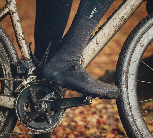 Pokrowiec z dzianiny nie zachęca na pierwszy rzut oka do wyjazdu rowerem na mokrą nawierzchnię. Jednak między dwoma warstwami miękkiego materiału znajduje się specjalnie opracowana membrana, która ma za zadanie izolować stopę od wilgoci i wiatru. Wewnętrzna elastyczna warstwa dopasowuje się do buta, a mankiet ze ściągaczem utrzymuje ochraniacz na właściwym miejscu. Nakładki na palce i wzmocnienia podeszwy pozwalają przeprowadzić rower przez trudniejsze fragmenty terenu i sprawiają, że nie jest to produkt jednorazowy.