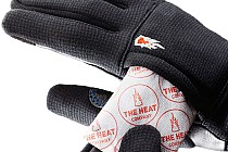 Ciekawie pomyślana jest zamykana kieszeń na grzbiecie rękawicy na saszetkę wypełnioną podgrzewającym się proszkiem. HANDWARMER to mieszanina substancji chemicznych zamkniętych w małym płaskim woreczku. Po kontakcie z powietrzem wyzwala się reakcja wytwarzająca ciepło do ok. 40 st. C. trwająca 8-12 godzin. Ciekawe jest, że tą reakcję można zatrzymać wcześniej, nie trzeba trenować 8 godzin, ani wyrzucać działającego jeszcze podgrzewacza. Wystarczy zamknąć go w szczelnej torebce aby odciąć dopływ tlenu, reakcja chemiczna się zatrzyma, a saszetka może być użyta ponownie.
