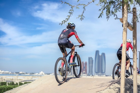 Trasa wyścigu znajduje się w ośrodku Trail X, najnowocześniejszym obiekcie do jazdy na rowerze górskim na wyspie Hudayriyat. Zjednoczone Emiraty Arabskie znane są z rozległych pustynnych wydm, więc naturalne jest, że trasa przebiega po ubitych piaszczystych szlakach, umiejscowionych na nierównym terenie imitującym góry, pustynię i skały. Ciągle kręta trasa oferuje zapierający dech w piersiach widok na lśniące morze i panoramę Abu Zabi. Można poszaleć na zakrętach z bandami, na wybojach i przeszkodach zbudowanych specjalnie na potrzeby wyścigu. Ze względu na płaską trasę z krótkimi podjazdami należy spodziewać się dość szybkiego tempa. Można jechać obok siebie na całym torze – ale znajdzie się też mnóstwo okazji do ucieczki! Publiczność może cieszyć się wspaniałym widokiem na tor, wyścig i drapacze chmur w Abu Zabi.