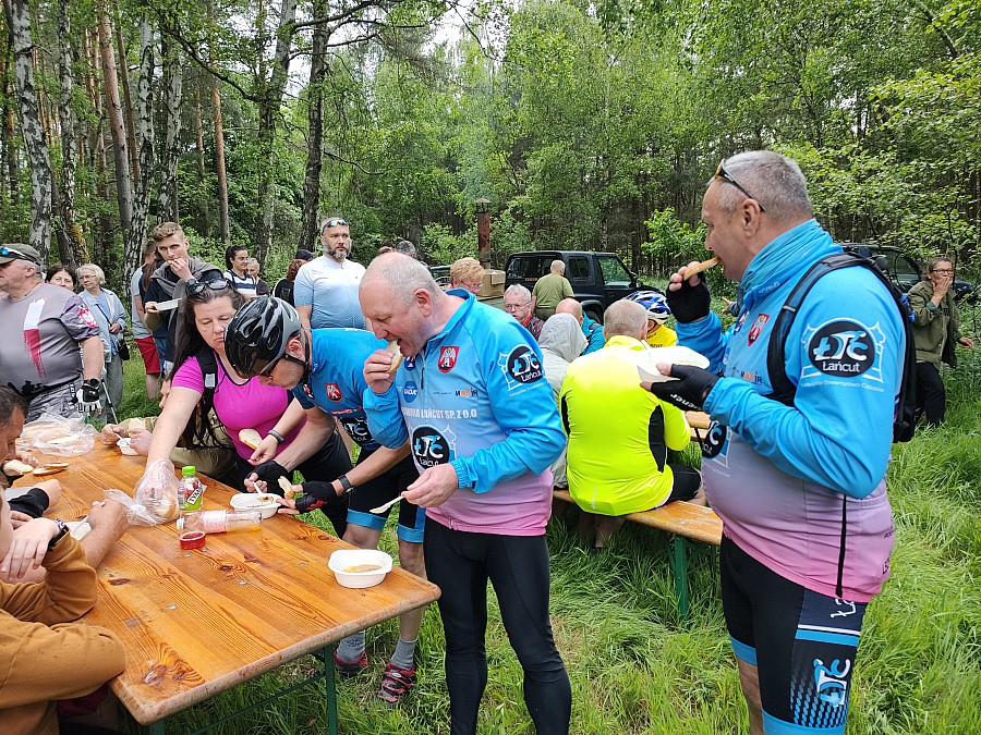Co za dzień, tak wiele się działo na rajdzie organizowanym przez Łańcuckie Towarzystwo Cyklistów. Tyle wrażeń z jednego rajdu można by było obdzielić kilka imprez rowerowych. Jak zwykle uczestnicy dopisali a następnie wspólnie z Burmistrzem Miasta Łańcuta Damianem Szubartem , dyr. MOSiR Jerzym Hałka, Przewodniczącą Komisji Społecznej RM Anną Ryznar-Sicńską , Adamem Nazimkiem i Karoliną Pil-Sowa rozpoczęliśmy sezon turystyki rowerowej na terenie Miasta Łańcuta startując w Łańcuckim Rajdzie Rowerowym Kwitnącej Azalii. Z parkingu MOSiR w Łańcucie przy ul. Składowej cykliści ruszyli na trasę do Rakszawy, Wydrza, Julina -Marysina, Podkudłacza , Brzózy Stadnickiej i Żołyni. .Rozpoczęli przejazd historyczną drogą tak jak 92 lata temu przejeżdżał z Łańcuta do Rakszawy Wincenty Witos (były trzykrotny premier Rzeczypospolitej) na więc i poświęcenie sztandaru PSL. Witos pokonał tą drogę w asyście 300 konnych i 98 cyklistów a jego orszak ciągnął się przez 3 km. W wiecu na błoniach rakszawskich wzięło udział ponad 20 tysięcy mieszkańców z powiatu Łańcuckiego , kolbuszowskiego, rzeszowskiego i jarosławskiego. Z tego historycznego wydarzenia pozostał głaz narzutowy z informacją co tutaj się odbyło. Następnie rajd przejechał do Wydrza i Marysina gdzie znajduje się gajówka z 1920 r a obecnie stanica Koła Myśliwskiego Kuropatwa z Leżajska. Cykliści przemieszczali się duktami leśnymi po byłej Puszczy Sandomierskiej. Kolejnym historycznym przystankiem był Podkudłacz, gdzie znajduje się Kaplica wybudowana 1933 r a poświęcona Dżuli, którą śmiertelnie ranił odyniec podczas polowania. W sąsiedzie znajduje się również głaz poświęcony Adamowi Zamojskiemu od Potockich. Te miejsca znajdują się w bardzo urokliwych terenach masywu leśnego należącego do Nadleśnictwa Leżajsk. Podczas jazdy cyklistom dopisywała pogoda oraz humory, gdyż zbliżaliśmy się remontowanego spichlerza. W tej części rajdu dowiedzieliśmy się trochę o historii Ordynacji Potockich czy wcześniej o historii powstania Rakszawskiej Fabryki Sukna, kto ją założył a nikt inny jak mieszkaniec Łańcuta Bolesław Żardecki, wieloletni Wicemarszałek Powiatu Łańcuckiego i poseł do Krajowego Sejmu . Grupa żwawo kręciła i w końcu dojechała do Galerii Plenerowej PO CO w Żołyni przy ul.Górskiej , gdzie wystawione są prace artystów Sochanka, Berezowskiego i Wiśniewskiego . Galeria wystawiła prace artystów ukazujące dwa sprzeczne ze sobą światy boksu i szachów. Warto to zobaczyć przecież dziś dzień muzeów. Ostatnim ale głównym celem rajdu było uczestnictwo w odsłonięcie pomnika na historycznym polu zrzutowym Armii Krajowej PASZKOT 2 . W tak niecodziennym wydarzeniu wzięli udział mieszkańcy Żołyni, rodziny żołnierzy AK z Niska, przedstawiciele sejmu RP, Wójt Gminy Żołynia Piotr Dudek i sekretarz UG Waldemar Natoński oraz Grupa Rekonstrukcyjna ORDON .Informacje o cichociemnych i historię dwóch zrzutów, przedstawił Waldemar Ostrowski z Żołyni. Po dokonaniu odsłonięcia pomnika Wójt Gminy Żołynia zaprosił uczestników na żołnierską grochówkę.
