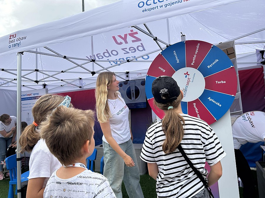 Stoisko kampanii „Żyj bez obaw o rany!” cieszyło się ogromnym zainteresowaniem. Oferowano interaktywne filmy edukacyjne oraz broszury na temat pierwszej pomocy, co pozwoliło uczestnikom zdobyć praktyczne umiejętności w zakresie leczenia ran. Uczestnicy nauczyli się, jak skutecznie reagować na różnego rodzaju urazy, co zwiększyło ich przygotowanie do szybkiego i właściwego radzenia sobie siebie w codziennych sytuacjach. Wyniki quizu pokazały, że blisko 87% uczestników poprawnie odpowiedziało na pytanie o eliminację patogenów przez środki odkażające, wskazując, że bakterie, wirusy i grzyby mogą być skutecznie zwalczane przez takie produkty. Największe trudności sprawiło pytanie dotyczące korzyści szybkiego działania leków odkażających, np. octenisept® spray, w kontekście opieki nad ranami, na które poprawnie odpowiedziało 51% uczestników.