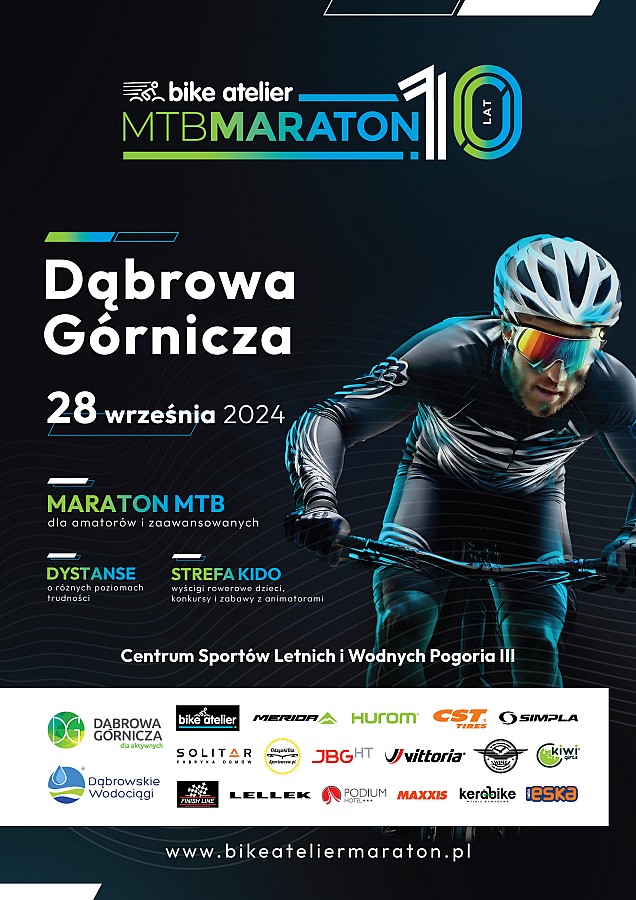 W ostatnią sobotę września (28.09) spotykamy się na finale Bike Atelier MTB Maratonu w doskonale znanym mieście dla naszych uczestników jakim jest Dąbrowa Górnicza, która była gospodarzem imprez w każdym z 10 sezonów cyklu BAM. Miasteczko zawodów zlokalizowane będzie w Centrum Sportów Letnich i Wodnych Pogoria III.