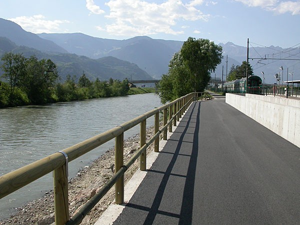 Z Merano do stolicy prowincji - Bolzano można dojechać asfaltową drogą rowerową- bardzo wygodną, szeroką, idealną dla rowerzystów na rowerach szosowych. Droga biegnie niemal cały czas między linią kolejową a rzeką Adygą. Nachylenie drogi jest bliskie 0%. Po obu stronach ciągną się piękne górskie krajobrazy. Co kilka kilometrów pojawiają się rozjazdy do mniejszych turystycznych miejscowości. Na początku jest to Lana i Gargazon. Bliżej Bolzano jest rozjazd w kierunku Appiano a dalej jadąc wzdłuż drogi "Strada del Vino" można dotrzeć do jeziora Lago di Caldaro. Ten odcinek położony jest w rozległym parku na wzgórzach wokół Bolzano. wydaje się , że przenosimy się nagle do innego świata.