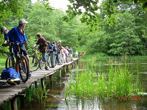 Rada sołecka w Czarnej Dąbrówce dnia 17.10.2009 oddała do użytku nową ścieżkę rowerową. Jest to pętla o długości 27 km. Start i meta - plac rekreacyjny nad jeziorem wiejskim. Nowa ścieżka rowerowa prowadzi po terenach sołectw: Czarna Dąbrówka, Kozy, Dęby, Jerzkowice. Jest to doskonała i niezwykle atrakcyjna trasa, którą postanowiliśmy wykorzystać na urządzenie ścieżki rowerowej „Nad Łupawą” - oznakowana w terenie kolorem czerwonym.. Trasa ścieżki rowerowej w większości przebiega wzdłuż rzeki Łupawa /początkowo po prawej stronie, a za Kozinem po lewej stronie/ lasami Nadleśnictw Łupawa i Bytów a w końcówce/7 km/ biegnie dawnym nasypem kolejowym. Zależało nam, aby Turysta pokonując tą trasę poznał walory krajobrazowo-przyrodnicze naszego regionu, jego zabytki architektoniczne oraz trochę historii. Przez długie lata szlak kolejowy został zapomniany. Wykorzystywała go tylko przygodnie miejscowa ludność. W wielu miejscach został zupełnie zarośnięty /na wprost Jerzkowic/.Postanowiliśmy go reaktywować, łącząc Czarną Dąbrówkę z planowaną budową nowej ścieżki rowerowej tzw. ”Pętli Kaszubskiej”, która ma przebiegać przez Jerzkowice. „Pętla kaszubska” to szlak rowerowy w formie pętli wokół Bytowa, łączący gminy powiatu bytowskiego położone na obszarze Partnerstwa Dorzecze Słupi. Na trasie ścieżki rowerowej znajdują się trzy tablice edukacyjne. Urządziliśmy również trzy miejsca wypoczynkowe. Trasa jest dobrze oznakowana. W terenie lesistym znajduje się ok. 120 oznakowań na drzewach a w terenach zabudowanym ?Czarna Dąbrówka, Kozin, Zawiaty/ ustawiliśmy znaki drogowe R-1, R-1a i R-1b.. Na odcinku od Kozina do Ceromina trasa nowej ścieżki rowerowej pokrywa się z trasą rowerową „Na kolejowym szlaku”. W większości prowadzi drogami gruntowymi, nie wszędzie łatwymi do pokonania. Wymaga od Turysty pewnego wysiłku, ale to tylko podnosi jej atrakcyjność. Ścieżka rowerowa powstała w ramach programu "Turystyka rowerowa - przyjazna środowisku, korzystna dla zdrowia". Wydany został folder /500szt/ o ścieżce rowerowej. Uporządkowano odcinek 7 km trasy nasypem dawnej linii kolejowej. Teraz każdy kto wsiądzie na rower może tę trasę pokonać nie obawiając się, że zabłądzi. Zapraszamy na wycieczkę rowerową .