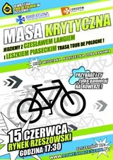 Informujemy, że w dniu 15 czerwca, Stowarzyszenie ROWERY.RZESZOW.PL wspólnie z Urzędem Miasta Rzeszowa, organizuje MASĘ KRYTYCZNĄ, czyli przejazd dużej grupy rowerzystów ulicami miasta. Spotykamy się na rzeszowskim Rynku o godzinie 17:30, gdzie zrobimy sobie zdjęcie pamiątkowe, a następnie wyruszymy wspólnie na trasę.