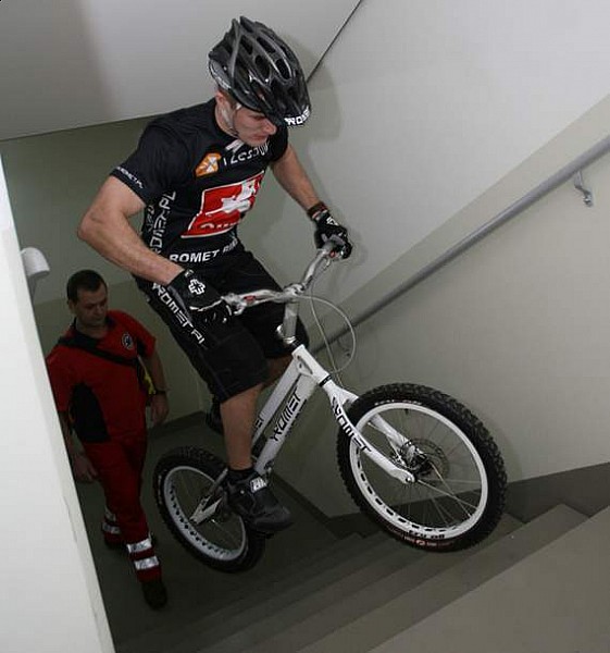 To już kolejny wyczyn tego trialowca, wcześniej wjechał już na szczyt Pałacu Kultury, który liczy 30 pięter i 780 schodów.