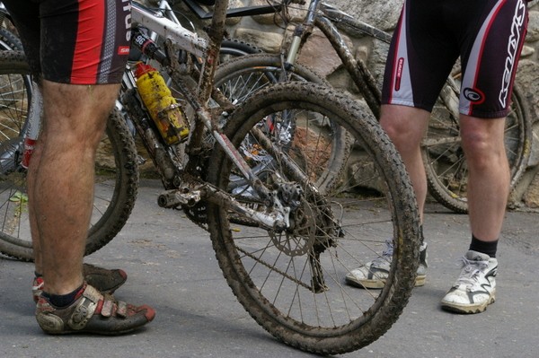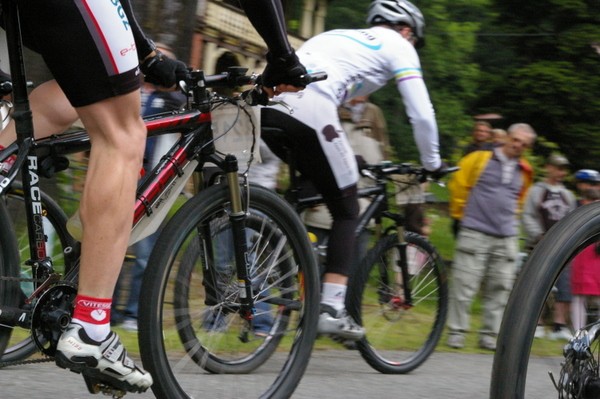 Jako początkujący rowerzysta górski z ciekawością przyglądałem się zawodom w Międzygórzu. Oczywiście podziwiałem sprzęt zawodników. I tu zaskoczenie. Nie wszystkie rowery były z "wyższej półki". Zauważyłem nawet takie, które z trudnością nazwać można by "góralami". Nie miały amortyzatorów a ich opony nadawały się bardziej do parku niż na błotniste i kamieniste górskie bezdroża. A jednak i na takich rowerach można ukończyć rajd. Nasuwa się powiedzenie: "nie szata zdobi człowieka" a cena roweru czyni rowerzystę. A po rajdzie wszystkie są jednakowe - brudne.
