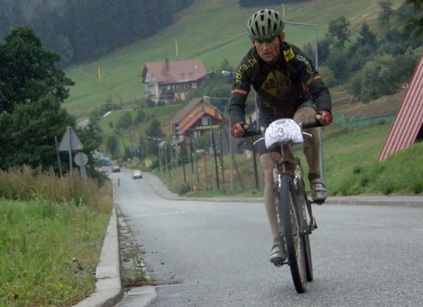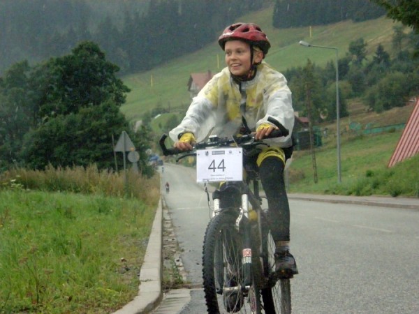 Bardzo ciekawy był sam pomysł na poprowadzenie trasy. Zaczęło się od 2 kilometrowego podjazdu prowadzącego ponad trasy narciarskie po wąskich krętych sciezkach. Od początku widac było, że mamy do czynienia z prawdziwym wyścigiem górskim. Potem chwila spokojniejszej jazdy i zjazd spowrotem do centrum Zieleńca. Po takim górskim prologu i paru metrach asfaltu skręciliśmy w dół wąską i bardzo błotnistą ścieżką w stronę strumyka Młynówka. Przejechaliśmy wpoprzek drogi Dusznickiej i zaczęliśmy podjeżdżać szutrową ścieżką po zboczach Kołodzieja i Czyżówki. Na 10 km. skręcamy ostro w prawo i podjeżdżamy ostro pod górę asfaltową drogą Justyny. Tutaj okazywało się kto ma najwięcej sił w nogach. Na krótkim dystansie mozna było nadrobić dużo czasu, ale też dużo stracić. Później było kilka kilometrów szeroką, ale trochę dziurawą ścieżką lekko w dół w stronę Duszników Zdr.a następnie krótki podjazd i znowu kilka kilometrów trochę nierówna, trochekamienistą ścieżką. W końcu dojechaliśmy ponownie do 12 -procentowego podjazdu Drogą Justyny. Ale zaraz potem w nagrodę przejechaliśmy kilkaset kilometrów z prędkością 55-60 km/h. Później też było przyjemnie- kilka lekkich podjazdów i zjazdów po euroregionalnych trasach rowerowych - miejscami podsypanych żwirem, żeby w takie deszczowe dni nie brodzić po kolana w wodzie. W końcu dojeżdżamy do Drogi Dusznickiej i Autostrady Sudeckiej i zaczyna się kwintesencja wyścigu MTB. 4-kilometrowy finisz w stronę mety dystansu MINI to była prawdziwa próba charakteru. W oddali widać było zawodników, których za wszeką cenę chciało się dogonić, z tyłu słychać było już oddechu goniących nas rywali, a nogi jak nazłość powoli odmawiały posłuszeństwa. Fajnie by było spróbować przejechać jeszcze jedną pętlę, ale warunki pogodowe sprawiły, że 80 % uczestników zatrzymało się jednak na mecie pierwszej pętli.