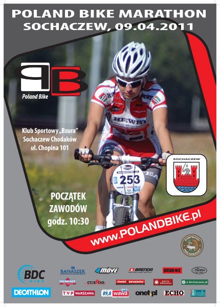 To będzie pierwszy, inauguracyjny etap cyklu Poland Bike Marathon 2011. W sobotę 9 kwietnia na miłośników jazdy na rowerach górskich czeka Sochaczew, oddalony od Warszawy o 57 km. Dla Sochaczewa będzie to debiut na mapie Poland Bike. Miasteczko Poland Bike, Biuro Zawodów, start i meta maratonu znajdą się w północnej dzielnicy Sochaczewa, przy stadionie klubu sportowego Bzura Chodaków przy ulicy Chopina 101.