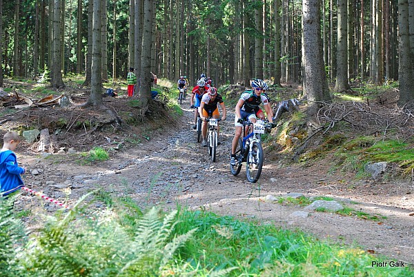 Sezon kolarski powoli zbliża się do końca, a dopiero zaczynają się najbardziej wymagające maratony rowerowe. Po Powerade MTB Marathonie w Międzygórzu można było wystartować w Karpaczu na najtrudniejszym wyścigu z cyklu Bike Maraton. A na przyszły weekend planowany jest jeszcze maraton Powerade’a w Istebnej. Na szczęście utrzymuje się jeszcze letnia pogoda. W takich warunkach przy słonecznej pogodzie wyścig na zboczach górskich pod Śnieżką był prawdziwą przyjemnością. Na starcie stanęło sporo zawodników (850os.), ale początek wyścigu ma to do siebie, że na szerokiej szosie w centrum Karpacza następuje szybko naturalna selekcja i po wjeździe do lasu nie ma tłoku na trasie.