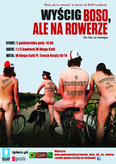 Z okazji premiery filmu „Boso ale na rowerze” w reż. Felixa van Groeningena (dystrybucja Against Gravity) na darmowej platformie internetowej iplex.pl, Against Gravity, W Biegu Café oraz iplex.pl zapraszają wszystkich bosych rowerzystów do wzięcia udziału w wyścigu rowerowym „Boso, ale na rowerze”.