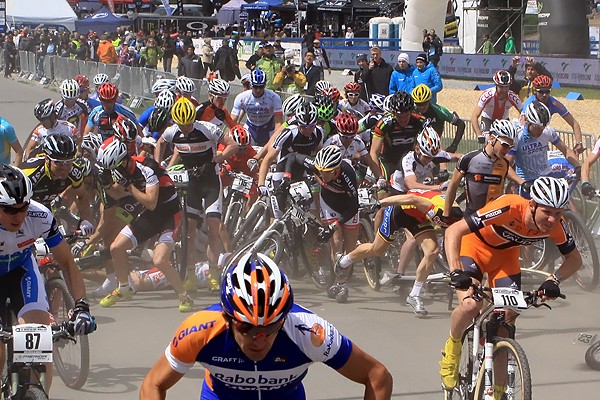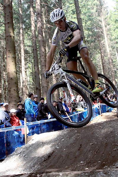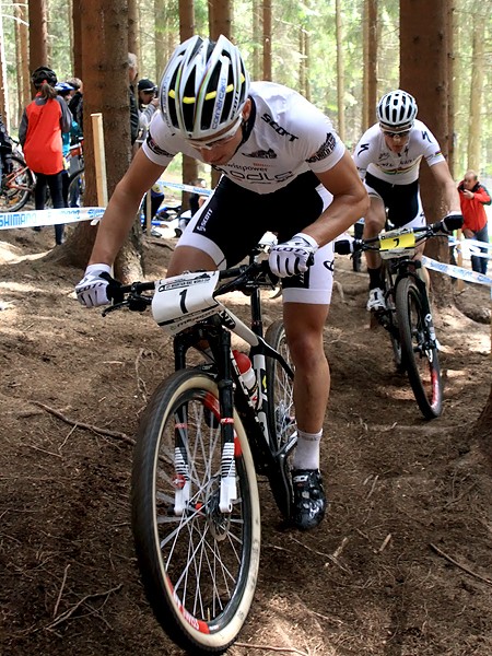 Wyścig mężczyzn zaczął się też od wielkiej kraksy w środku peletonu. Na szczęście nie ucierpieli w niej ani polscy zawodnicy, których tym razem startowało aż 9 w 160 osobowej stawce, ani faworyci do zwycięstwa. Od startu czołową grupę ciągnęli Czech Jaroslav Kuhlavy, Bury Stander z RPA i i Szwajcar Nino Schurter. Ostatecznie faworyt gospodarzy sprawił zawód kibicom i przegrał finisz o kilka sekund. Od początku bardzo dobrze jechał Marek Konwa i po sukcesie w sprincie zapowiadało się, że to będzie bardzo udany dla niego weekend. Długo utrzymywał 2 min. stratę w okolicach 20 miejsca. Ostatecznie zajął 35 miejsce. Z początku niedaleko za Konwa utrzymywał się także Piotr Brzózka, ale ostatecznie nie ukończył wyścigu.