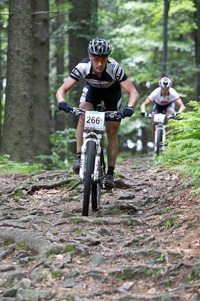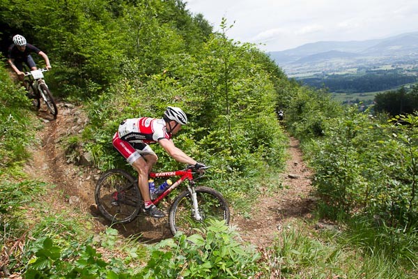 Po wczorajszej przystawce z utwardzonymi duktami Beskidu Śląskiego w roli głównej na II etapie Beskidy MTB Trophy przyszła pora na solidne pierwsze danie tegorocznej edycji w Beskidach u naszych południowych sąsiadów. Po wcześniejszych krzykliwych wypowiedziach i sporych emocjach związanych z dość przystępnym etapem dzisiaj uczestnicy z pewnością musieli wykrzesać z siebie nieco większe pokłady energii i umiejętności. Na tym etapie mieliśmy do czynienia z kilkoma dość długimi, choć równymi podjazdami, a po dwóch z nich następowały bardzo trudne, choć dające wprawionym ogromną dozę przyjemności, zjazdy. Mowa oczywiście o słynnych agrafkach z Javorovego oraz technicznym stromym singlu z Ostrego.
