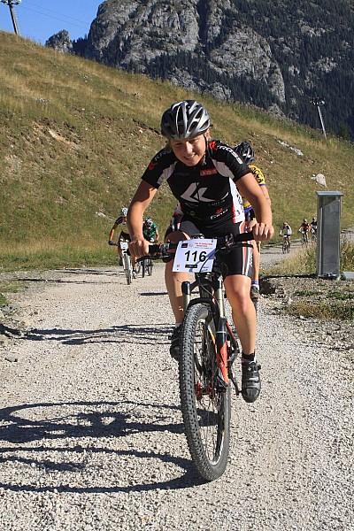 Najdłuższa trasa z pewnością była godna wyścigu na tak wysokim poziomie i składała się z czterech bardzo długich i trudnych podjazdów. Do pokonania było 64km. i 2760m. przewyższeń. Już pierwszy podjazd budził respekt wśród uczestników: od startu w miejscowości Moena na wysokości 1170mnpm. trasa prowadziła szutrową ścieżką do górnej stacji kolejki linowej na wysokości 2206mnpm. Po drodze zapierające dech w piersiach widoki na skaliste szczyty, wyczerpujące interwały o nachyleniu przekraczającym 30% i coraz mniej tlenu w górskim powietrzu. Jednak po pokonaniu 8-kilometrowego, morderczego podjazdu... wcale nie było lżej. Zaczęło się od szybkich szutrowych zjazdów i odcinka po trasie narciarskiego supergiganta i technicznych interwałów na górskim zboczu. Potem kolejne podjazdy po 500m przewyższenia. Zaczynały się niewinnie, ale kończyły się stromymi ścianami na luźnym podłożu lub po górskich kamienistych szlakach. Bardzo efektowny był też przejazd wąskimi, stromymi i krętymi, miejskimi uliczkami. Zawodnicy na centymetry mijali otwarte okna domów z dopingującymi ich mieszkańcami.