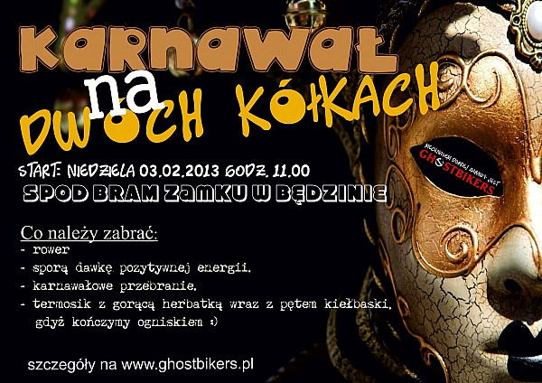 Ostatki zbliżają się wielkimi krokami! Aby nie przegapić czasu na dobrą zabawę zapraszamy na rowerowo - karnawałową ustawkę !