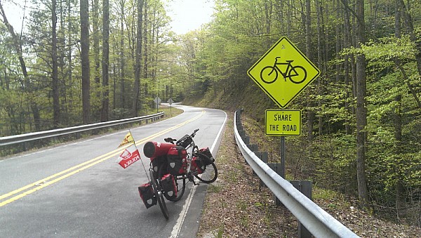 Wieczorem przeszła sucha burza, trochę błysków i hałasu bez deszczu. Rano obudziłem się prawie nie zmęczony i w suchym namiocie. Podczas codziennej porannej kawy w McD zaczepił mnie facet, trochę pogadał i wręczył 20 dolców na śniadanie. Dzień zaczął się ciekawie... Potem wcale nie było gorzej. Ponownie wiało mi w plecy więc kilometry pokonywałem dość szybko. Przez cały dzień trzymałem się również wąskiej i spokojnej drogi. Ze wszystkich przejechanych do tej pory stanów Północna Karolina podoba mi się najbardziej. Najspokojniejsze drogi, najwięcej zielonych terenów i w góry w które wjadę już jutro.