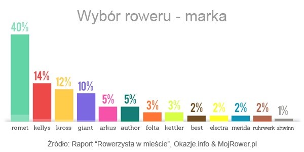 Choć przy podejmowaniu decyzji o zakupie roweru miejskiego, jego marka ma na ogół marginalne znaczenie, warto zauważyć, że niekwestionowanym liderem wśród producentów tej kategorii jest firma Romet. Na kolejnych pozycjach rankingu top producentów rowerów miejskich znalazły się firmy Kellys, Kross oraz Giant. Znane marki oferują swoim klientom dostępność punktów serwisowych i części zamiennych. Świadomi cykliści, którzy dbają o swoje rowery i z każdą zmianą pory roku dokonują ich renowacji, pewnością biorą ten czynnik pod uwagę.