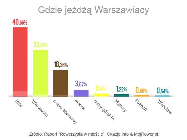 Choć szukają informacji o trasach rowerowych nad morzem, na Mazurach i w górach, to zdecydowanie najbardziej zainteresowani są własnym miastem - trasami w centrum, na przedmieściach i nad Wisłą. Warszawa posiada obecnie ok. 300 km ścieżek rowerowych, co jest rekordem w skali kraju. Niestety ścieżki często urywają się, nie są połączone w jedną spójną sieć. Nie docierają do ścisłego centrum stolicy, co jest dużym mankamentem szczególnie z perspektywy turysty.