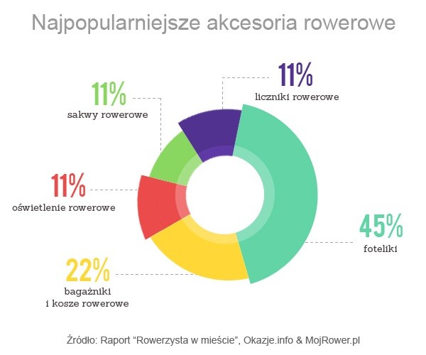 Największym jednak zainteresowaniem w kategorii ‘Akcesoria rowerowe’ cieszyły się foteliki. Jak można przypuszczać, rowerowa moda się rozszerza i rodzice preferujący jazdę na dwóch kołach od samego początku przekazują swoje przyzwyczajenia dzieciom.