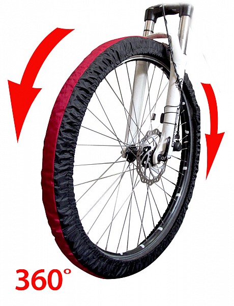 Ponieważ jestem czynnym rowerzystą a bardziej kolarzem amatorem często zdarza mi się trzymać rower w domu. Rowerów mam kilka więc obecnie używany jest w pokoju a reszta w piwnicy. Jak to z facetami bywa po trasie stawiam rower w pokoju a potem heja do wanny. Tym razem też tak było. Kiedy zażywałem kojącej kąpieli przyszła żona z pracy a w między czasie duży drań (mój rower) obsunął się o pomalował ścianę na czarno oponą. Jak się domyślacie to był jego ostatni raz w tym domu. Aż do momentu kiedy wymyśliłem opaski na koło zapinane na rzepę. Może nie jest to wynalazek na miarę Edisona ale ja mam spokój. Jak się okazuje część moich znajomych też.