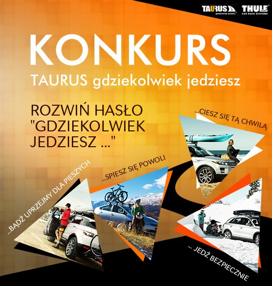 W poniedziałek ruszyła nowa akcja konkursowa pn. „Gdziekolwiek jedziesz…”, organizowana przez polską firmę Taurus. Zadanie jest proste. Wystarczy twórczo rozwinąć hasło. Najciekawsze pomysły zostaną nagrodzone bagażnikami rowerowymi – uchwytami montowanymi na dachu samochodu – ProRide 591 szwedzkiego Thule oraz BikeUp Taurusa.