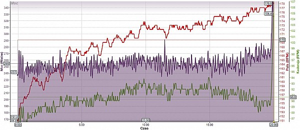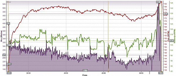 Test polegał na przejechaniu 20min z maksymalną średnią mocą. Za rejestrację wartości mocy/tętna/kadencji odpowiadał zestaw – koło z piastą Power Tap i liczniki Garmin (podziękowania dla Kamila Dziedzica za użyczenie swego;) Każdy zawodnik odbywał test na swoim rowerze z tylnym kołem zmienionym na koło z pomiarem mocy. By nie złamać 11 przykazania każdy przed próbą odbył ok 20min rozgrzewkę. Następnie jeźdźcy przechodzili do kwintesencji POWERmeetingu czyli dania z siebie wszystkiego przez 20min. Taktyki były różne – niektórzy patrzyli na moc którą generują i starali trzymać się ją w ryzach inni za to rzucali na garmina ręcznik i mieli w głębokim poważaniu wskazywane wartości. Bardzo dobrze widać przy późniejszej analizie kto przesadził na początku. Po poprawie nawyków startowych na kolejnym teście można spodziewać się już lepszego wyniku przez samo równiejsze rozłożenie sił.