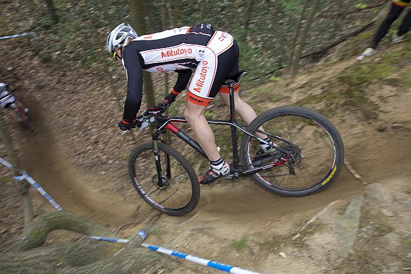 Z numerami od 99 do 101 zostaliśmy ustawieni niemal na samym końcu stawki. Na wyścigu xc nie wróży to dobrze. Na szczęście bardzo długi i stromy podjazd na początku pozwolił rozciągnąć się stawce. Mieliśmy już okazję startować w wyścigach Pucharu Czech czy MDC, ale tempo i wielkość peletonu jakie zobaczyliśmy na początku tego wyścigu, było wręcz niesamowite. Na pierwszych podjazdach jazda wyglądała tak, jakby wyścig miał zaraz się skończyć. Początkowe dwa okrążenia były dla mnie bardzo ciężkie. Potem zacząłem jechać swoim rytmem i nadrabiać straty. Z każdą rundą szło coraz lepiej. Po przeanalizowaniu międzyczasów czasów okrążeń stwierdziłem, że najlepszy czas przejazdu uzyskałem na ostatnim okrążeniu. Tymczasem dla wielu zawodników bardzo siłowa trasa okazała się zabójcza.