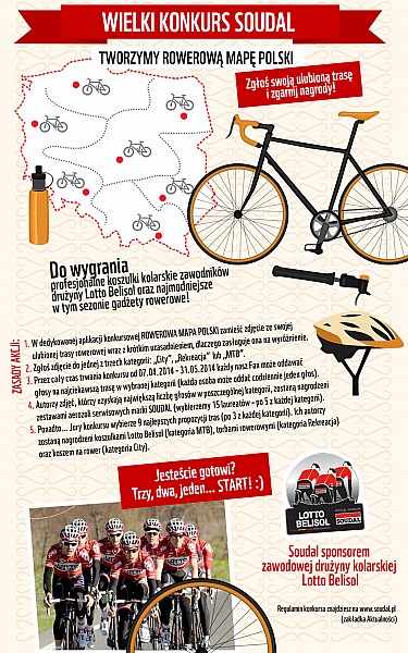 W imieniu marki SOUDAL, wszystkich zapalonych rowerzystów serdecznie zapraszamy do wzięcia udziału w konkursie „Tworzymy rowerową mapę Polski”!