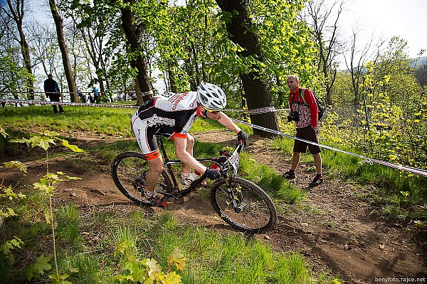 Biorąc pod uwagę wysoki poziom czeskim zawodów, spodziewaliśmy się jak zawsze mocnej konkurencji i ciekawej trasy. Optymizm startu niestety podupadł, gdy okazało się że nowo wyznaczona trasa to tak naprawdę ściganie po wykoszonym polu wokół pagórka. Frekwencja w elicie niestety także nie zachwycała. Po pierwszym okrążeniu dogonił mnie Karol Michalski. Tutaj zakończyła się gonitwa i aż do ostatniego okrążenia jechaliśmy razem. Całość wyścigu trwała 1h 33min i zająłem 6 miejsce. Na mecie doznałem satysfakcji, że to już koniec, chociaż mówią że każdy start jest lepszy od treningu.