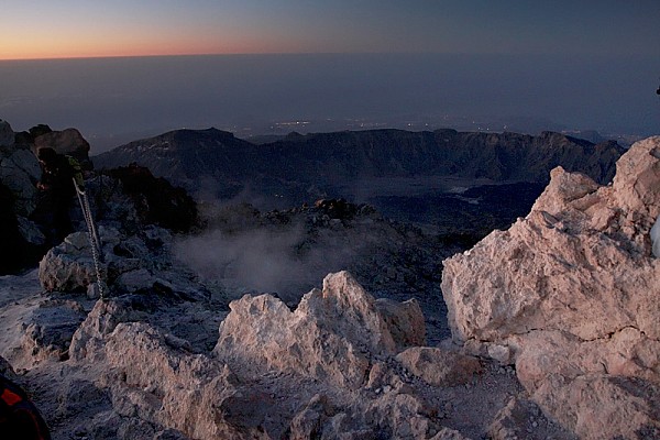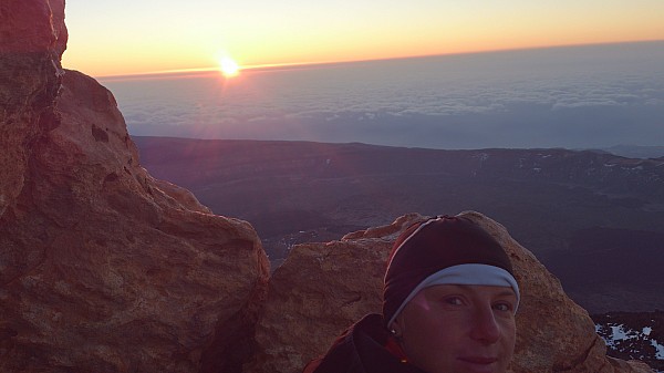 Pod koniec obozu w ramach "aktywnego wypoczynku" postanowiliśmy się tam wdrapać, co łatwe nie było. Spaliśmy na wysokości 3270 m n.p.m. w Altavista refuge, by o 5 rano po ciemku z "lampeczkami-pchełkami" zdobyć tą piękną górę. Dotarliśmy na szczyt gdy słońce zaczynało wznosić się nad oceanem, ze skał wydobywała się siarka. Było potwornie zimno, ale widok przecudowny, nie do opisania...