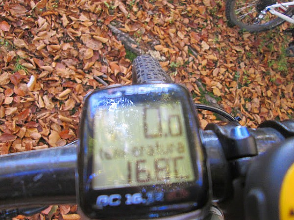 Roztrenowania czas to fajny okres, gdzie nie wazny jest czas treningu, dystans, czy tętno! Po prostu luźna jazda przed siebie i czerpanie z tego przyjemności!...W październiku pogoda była tak świetna, że jeszcze udało mi się zaliczyć dwa starty, natomiast pierwszy weekend listopada zwalił mnie z nóg. Na zdjęciu widać 16.8 'C w cieniu, w lesie. Takiej pogody nie można było przegapić i 1 listopada wraz z żoną i sąsiadem Hubertem wybraliśmy się na przejażdżkę więcej