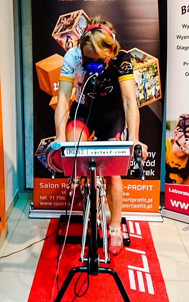 Test progresywny do odmowy: Wsiadamy na rower podpięty do komputera, zakładamy maskę, zaczynamy kręcić. Najpierw idzie lekko, jest wesoło. Szybko mijają 3 minuty. Przed każdym kolejnym skokiem obciążenia pobierana jest kropla krwi z palca. Robi się coraz ciężej, 3 minutowe interwały stają się coraz dłuższe, aż w końcu ciągną się w nieskończoność. Nogi palą, powietrza coraz mniej, sekundy trwają wieczność... Dochodzimy do swoich granic, w końcu mówimy dość...