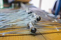 Proces wytwarzania koła rozpoczyna się od przygotowania pojedynczych elementów. Pierwszym krokiem jest „uzbrojenie” piasty w szprychy. W ten sposób przygotowuje się wewnętrzną część koła do jego wyplecenia.