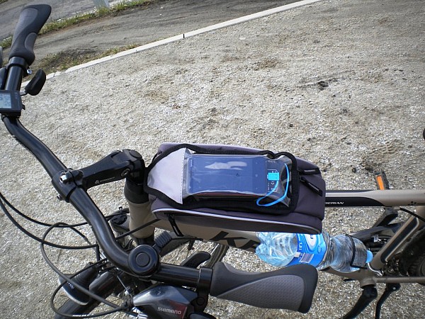 Czas na pierwszą jazdę. Torba wydała mi się bardzo ergonomiczna. Składała się z dwóch części - torby na ramę i przyczepianego do niej rzepami etui na komórkę. Czyli poszukiwany przeze mnie uchwyt i torba w jednym!