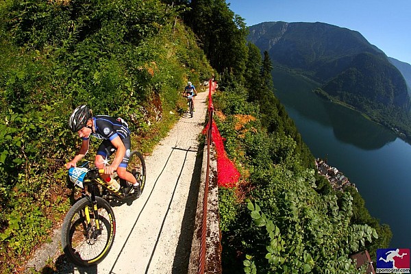 Najbardziej efektowny był podjazd na kopalnię wijący się szutrowym wąskim trawersem nad samym jeziorem Hallstätter. Ale to dopiero po wyjeździe na asfalt czekał najtrudniejszy fragment. Nagle szosa zaczynała iść bardziej w górę niż w przód. Napęd 1x11 zmuszał mnie do wstania na pedały, żeby całym swoim ciężarem dociskać pedały i jednocześnie dociążyć przód, który jakoś dziwnie rwał się do góry. Trochę to trwało nim zaczął się zjazd..... Potem miało być już zdecydowanie lżej, ale tego dnia w mojej jeździe coś ewidentnie nie grało. Niestety 3 ciężkie górskie starty w Alpach francuskich (Roc des Alpes) i włoskich (MŚ HERO) oraz polskich Karkonoszach (Puchar Polski Bike Maraton) poprzedzające występ w Austrii, musiały w końcu dać o sobie znać i dobitnie poczułam to na każdym z podjeździe. Drugi, najdłuższy o przewyższeniu ok 700m nie miał końca, a cyferki na Garminie wskazujące wysokość nie chciały szybko rosnąć. Moje nogi gotowały się od wysiłku i upału! Na upragnionej wysokości prawie 1500 m zrobiło się nieco chłodniej, droga w dół po zdradliwych szutrach trwała i trwała....