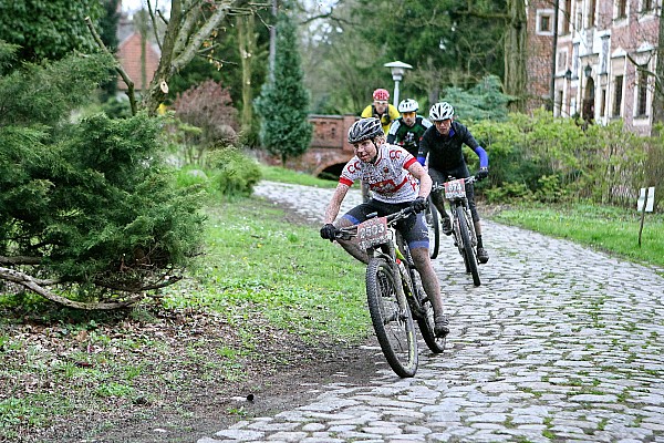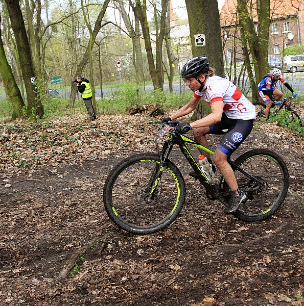 Czego można było się spodziewać po polnych i leśnych ścieżkach w okolicy Wojnowic i Miękini? Na pewno solidnej dawki błota, bo przez ostatnie kilka dni pogoda nie rozpieszczała, a powrót z pracy w piątkowy wieczór w strugach deszczu nie pozostawiał już żadnych złudzeń. Nie ma gór, więc nie są to tereny dla mnie, ale kilka singli i krótkich podjazdów, dużo szybkich, leśnych ścieżek to doskonała okazja, by potrenować wszystko to, z czym mam największy problem - szybkość i dynamika, płynne pokonywanie zakrętów. Tłum spragnionych rywalizacji zawodników, wyraźnie wygłodniałych po długiej zimowej przerwie ruszył od razu mocno. Trochę przespałam pierwszą część wyścigu, a kiedy już się przebudziłam i ożywiłam, dostałam sygnał, że ok 2 minuty przede mną jedzie Magda Sadłecka, która dobrze się odnajduje w tłumie. Dopiero gdzieś przed drugą rundą dystansu Giga, na tym przyjemniejszym fragmencie trasy, gdzie zahaczaliśmy chyba o wszystkie możliwe single w okolicy, złapałam swój rytm i zaczęłam nieco nadrabiać. Ostatecznie dotarłam na metę minutę po Magdzie. Dawno nie miałam okazji nałapać tyle błota po drodze, na koniec popadał deszcz i tak zakończył się mój pierwszy maraton w Polsce.