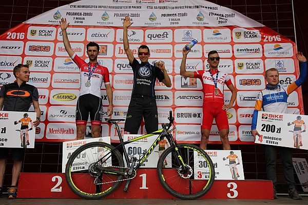 """Od czasu wprowadzenia w ubiegłym roku na imprezach z cyklu Bike Maraton kategorii Elita z nagrodami finansowymi, na starcie każdej edycji regularnie staje krajowa czołówka maratończyków MTB. Nie inaczej było w Polanicy, gdzie na dystansie GIGA przyszło mi rywalizować m.in. z Bartkiem Janowskim czy Przemkiem Ebertowskim. Już na pierwszym podjeździe odjechaliśmy razem z Bartkiem i współpracując pokonaliśmy pierwszą rundę. Mniej więcej w połowie trasy dołączył do nas Przemek, który swoim mocnym tempem zmęczył i urwał zawodnika Romet Racing Teamu. Czułem się wyśmienicie, dlatego na ostatnim kilkukilometrowym technicznym zjeździe zaatakowałem i odniosłem pierwsze w życiu zwycięstwo OPEN na dystansie GIGA w cyklu Bike Maraton (wielokrotnie bywałem drugi, nigdy pierwszy). Jako ciekawostkę dodam, że również pierwszy raz w życiu startowałem w maratonie na owalnej zębatce.