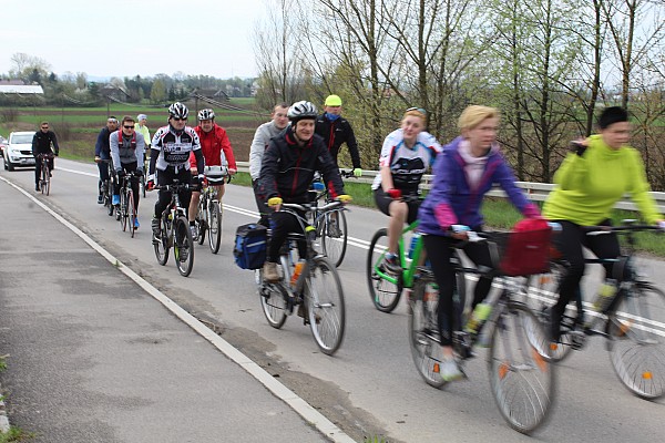 Łańcuckie Towarzystwo Cyklistów w Łańcucie, tradycyjnie od 5 lat rozpoczyna sezon rowerowy wspólnym wyjazdem. W poprzednich latach rozpoczynaliśmy jazdy trasami z miejscami znanych z tragizmu dawnych czasów, śladami znanych mieszkańców powiatu łańcuckiego a dziś ruszyliśmy nowym szlakiem GREEN VELO. Szlak ten powstał ze środków Europejskiego Funduszu Rozwoju Regionalnego, który liczy 2000 km z tego ok.50 km prowadzi przez powiat łańcucki. Dziś wspólnie z rowerzystami Jarosławskiej Grupy Rowerowej, Przemyśla oraz rowerzystów powiatu łańcuckiego o godz.9.15 ruszyliśmy z Miejsca Obsługi Rowerzystów przy Trakcie Honorowych Obywateli Miasta szlakiem do Julina. Pokonywaliśmy zabytkowe aleje miasta, zabytkowy Las Bażantarnia, starorzecze Wisłoka. Przejechaliśmy piękne Białobrzegi, dojeżdżając do starej sośni w Żołyni, gdzie odpoczywał Sobieski idąc na odsiecz wiedeńską, my też daliśmy sobie chwileczkę luzu. Kiedy przejeżdżaliśmy ul. Białobrzeską w Żołyni, musieliśmy odwiedzić najwspanialszą sportsmenkę Zofię Turosz Pani Zofia entuzjastycznie nas przyjęła opowiedziała o swojej karierze lekkoatletki- maratonki, uczestniczki maratonów Nowojorskich, Bostońskich i innych ale mając 80 lat nadal biega i codziennie pokonuje 10 km. Powiedziała, że bakcylem do uprawiania sportu był dyplom, który zdobyła mając 16 lat ! Po tak nieplanowanym a zarazem spontanicznym spotkaniu udaliśmy się do Gminnego Ośrodka Kultury, gdzie przyjęli nas Sekretarz Urzędu Gminy w Żołyni mgr Waldemar Natoński, dyr. GOK mgr Magdalena Kątnik- Kowalska oraz mgr Edward Rząsa – miejscowy malarz. Zwiedziliśmy obiekty GOK-u oraz wystawę malarską Edwarda Rząsy. Jadąc do Julina mijaliśmy zabytkowy spichlerz i dworek zarządcy folwarku Potockich w Brzózie Stadnickiej. Po trzech godzinach dojechaliśmy do celu MOR w Julinie naprzeciw Pałacyku Letniego Potockich .Tutaj czekało już rozpalone ognisko i kiełbaski do pieczenia. Ci co cukry spalili otrzymali Grześki do uzupełnienia. Po tym rekreacyjnym dniu zakończyliśmy wspaniała wyprawę Wschodnim Szlakiem Rowerowym GREEN VELO!!!