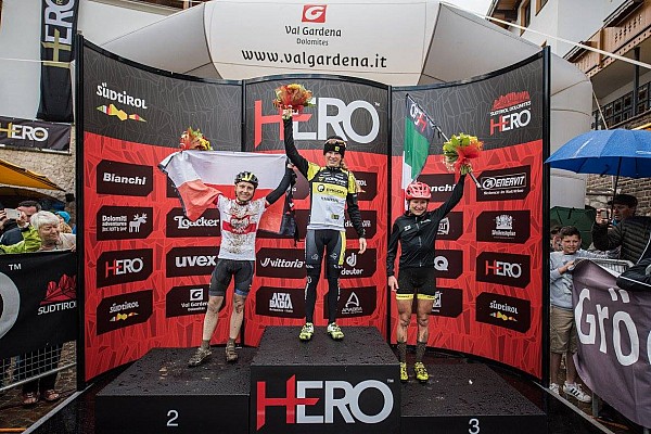 Gdy wjechałam na ostatnią przełęcz zaczął podać deszcz, który później na zjeździe przerodził sie w grad! Niedawna kraksa nakazywała mi w tych trudnych warunkach nieco przyhamować, by dotrzeć w całości do mety. Na dogonienie prowadzącej Bigham szans nie było, więc w strugach deszczu i gradu po nasiąkniętych i błotnistych ścieżkach zmierzałam spokojnie do Selvy. Na metę wjeżdzałam z wielką satysfakcją, na drugim miejscu w Elicie Kobiet ze stratą ok 3,5 minuty! Zdążyłam jeszcze dobrze zmarznąć czekając na krotką ceremonię kwiatową, ale warto było! Niecodziennie zostaje się HERO!