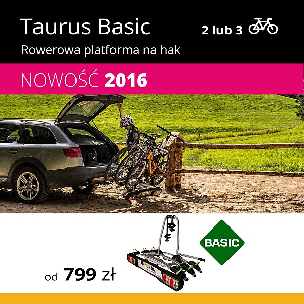 Taurus Basic to kolejna w tym roku rowerowa nowość w ofercie Taurusa, czyli producenta i dystrybutora boxów dachowych oraz innych urządzeń ułatwiających samochodowy transport. Wcześniej firma ta wprowadziła na rynek montowane na dachu uchwyty Taurus BikeUp Pro oraz mocowane na haku bagażniki Whispbar WBT21 i WBT31, których jest wyłącznym dystrybutorem w Polsce.