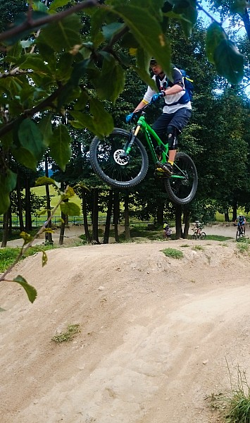 Zatem zaczynamy od przypomnienia sobie stabilnej pozycji. Ręce i nogi mają pomóc w amortyzacji nierówności, a także w przyspieszaniu na muldach poprzez dociskanie i odciążanie roweru. Zawsze patrzymy daleko przed siebie, aby znaleźć jak najbardziej optymalną ścieżkę oraz drogę wyjścia z zakrętu. I co ważne, wchodząc w zakręt musimy pochylić rower i dociążyć zewnętrzną stronę poprzez obniżenie nogi. Ciało nie pochyla się z rowerem. Punkt ciężkości musi być wyważony. Ostatnia uwaga - kiedy uczymy się i przyswajamy poprawne nawyki, jeździmy wolniej, by w pełni kontrolować ruchy. Skupiamy się na właściwym wykonaniu elementów technicznych, a na przyspieszenie przyjdzie czas później.